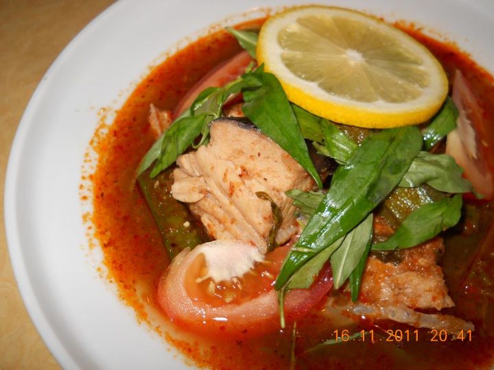 Tumbuk biji lada hitam, dengan bawang putih & halia. Panaskan minyak diperiok, letakan daun serai yang sudah dititik, rempah yang ditumbuk dan bawang & cili kisar. Bila bau rempah bangkit tuangkan air, biarkan ia mendidih.Sesudah mendidih, masukan sayur bendi & ikan pari. Ramaskan daun2 kesume dan masakan kedalamnya. Letakan jus lemon kedalam lauknya dan merasa. Letakan garam & gula ikut citarasa. Letakan buah tomato dan tutupkan api. Sajikan bersama nasi panas.